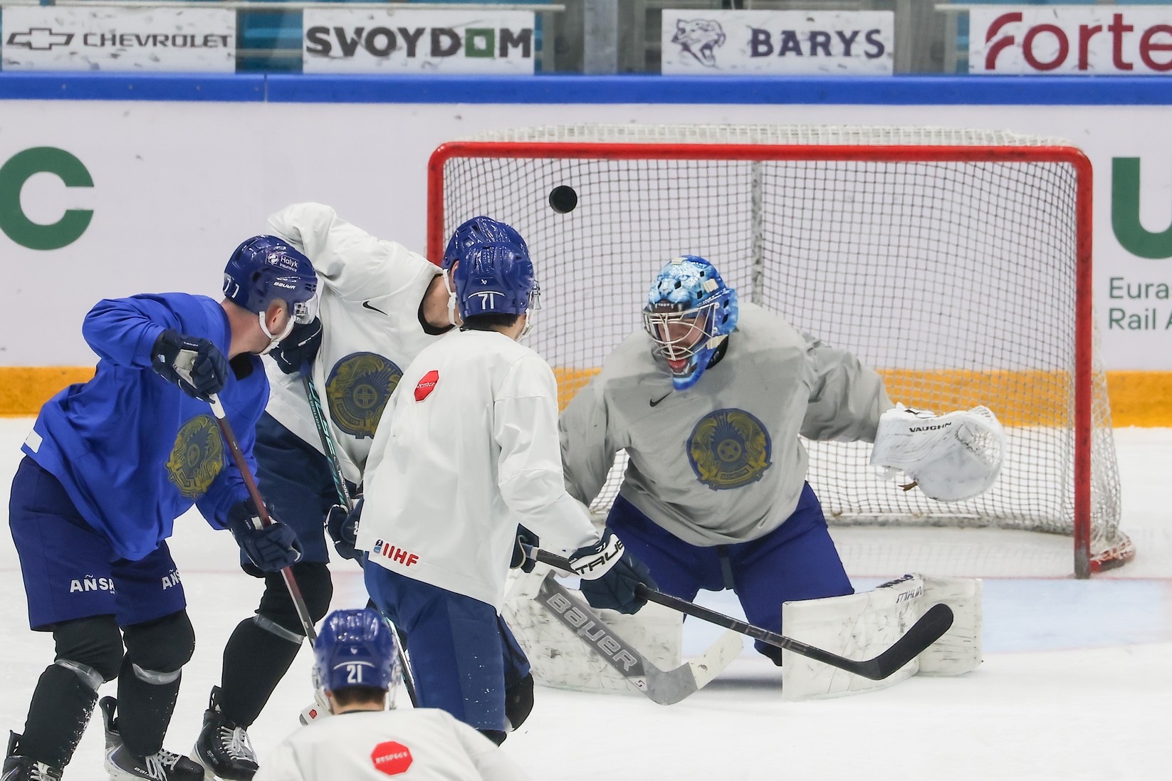 Национальная команда Казахстана в рамках первого этапа УТС провели двусторонний матч. Игроки были поделены на две команды – «Белых» и «Синих».